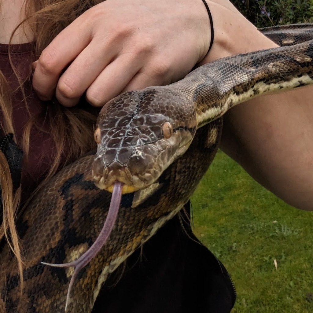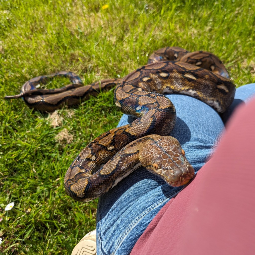She is a typical retic, very sharp to handle and is currently only handled during enclosure maintenance and when aiding with stuck shed. This is done with a hook and protective equipment.