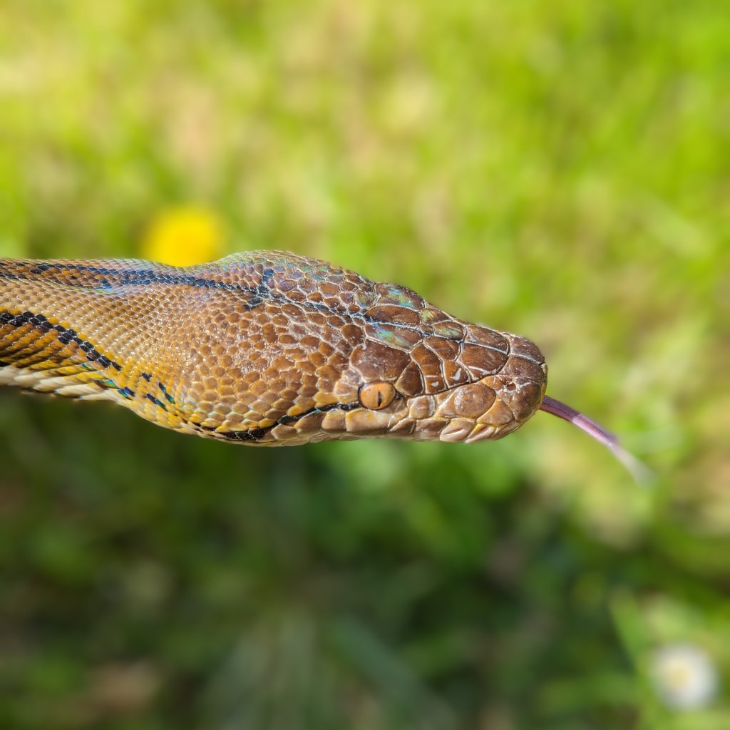 Celestia arrived with us in 2024, and was found by a member of the public outside their house in an animal cage alongside Eclipse. We don’t know her history due to this. We believe she may be a dwarf variety of reticulated python, however consideration must be taken in case she grows to adult standard sizes. She has not been sexed, but has been dubbed female by our team so far.