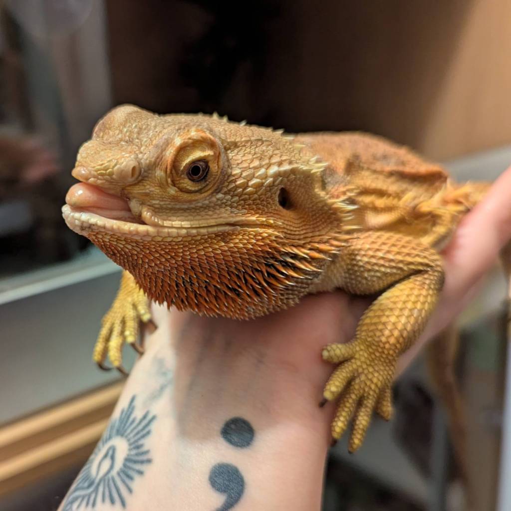 Dart is a 4 year old bearded dragon who was surrended by their previous owner due to deteriorating health and being unable to care for her.