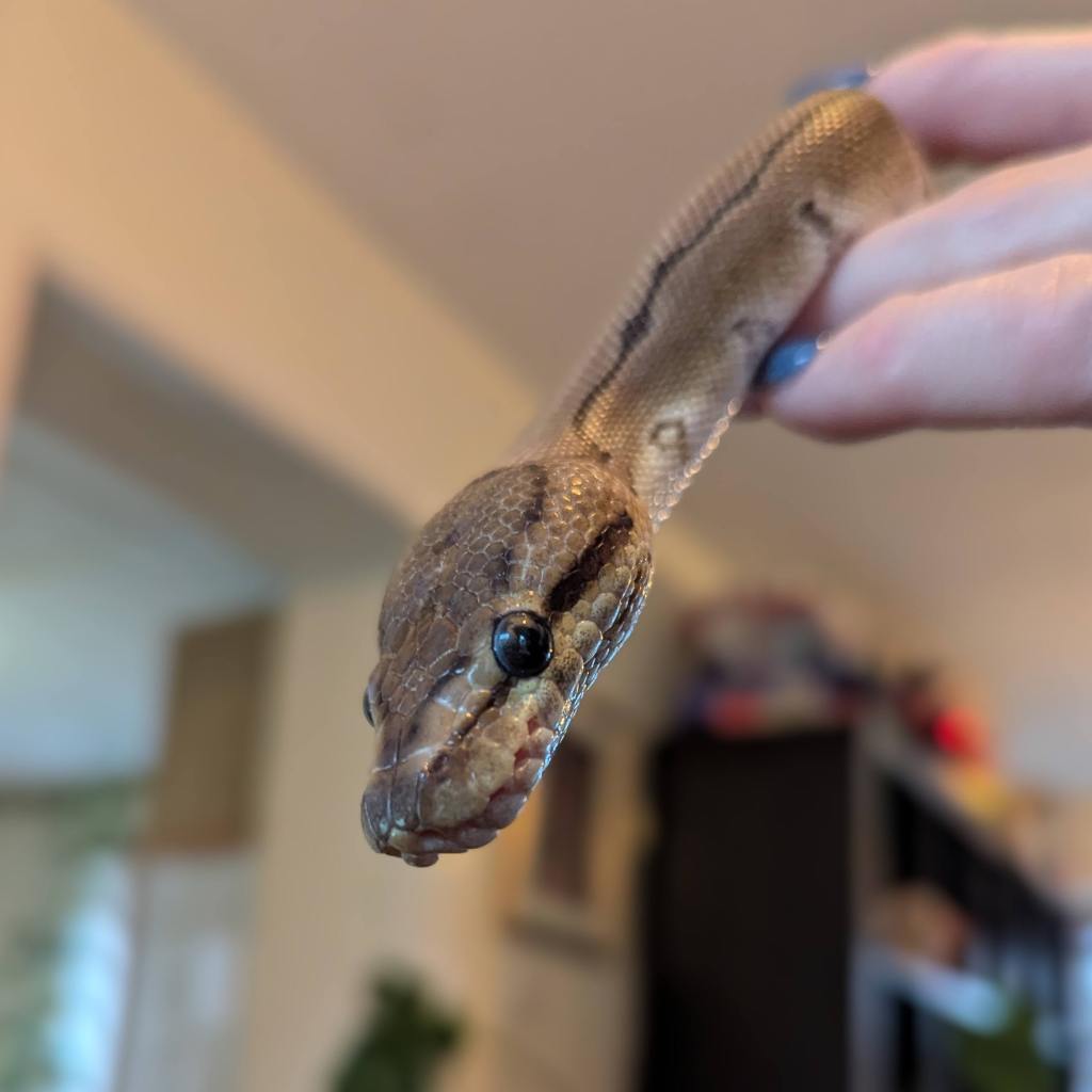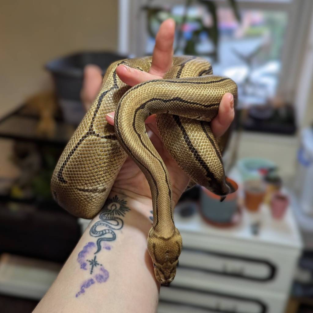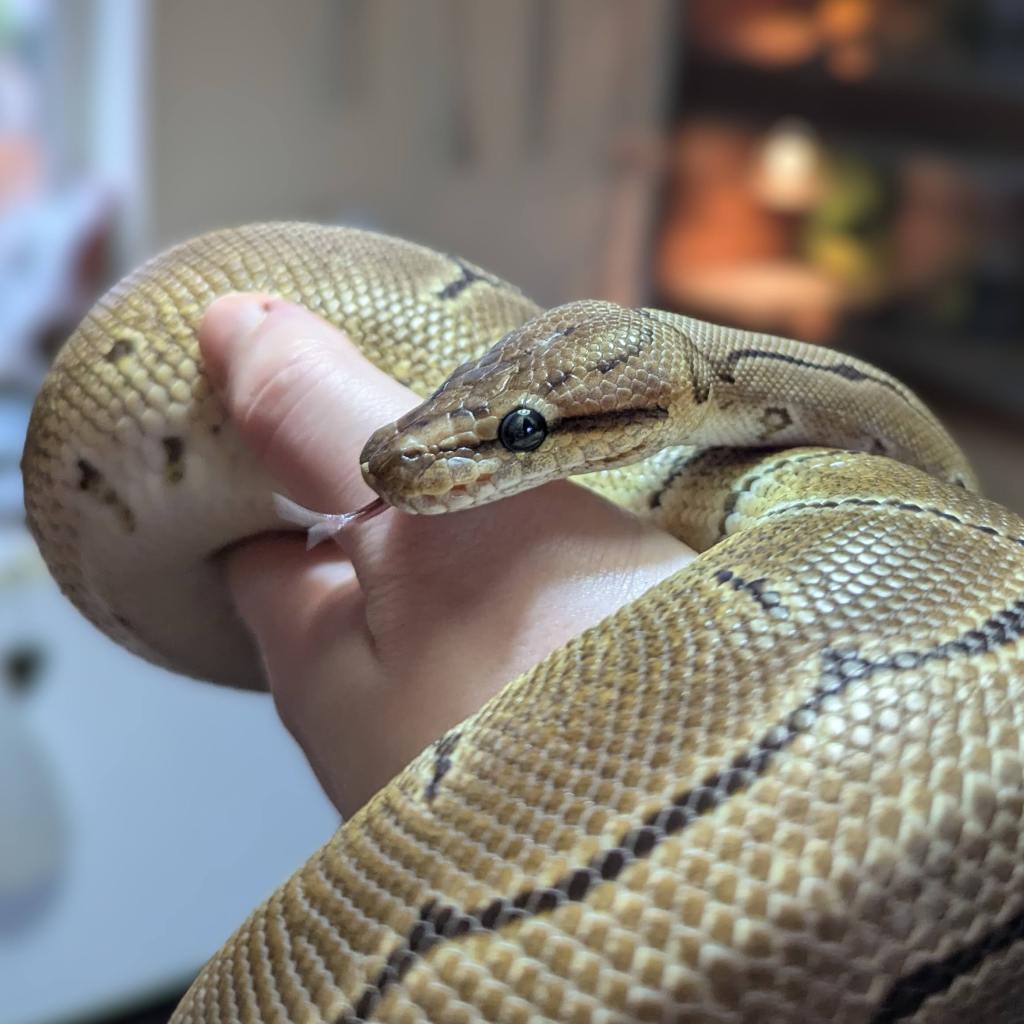 Myra is a lovely pinstripe Royal Python. She was surrendered to us due to a change is personal circumstances for her previous owner.