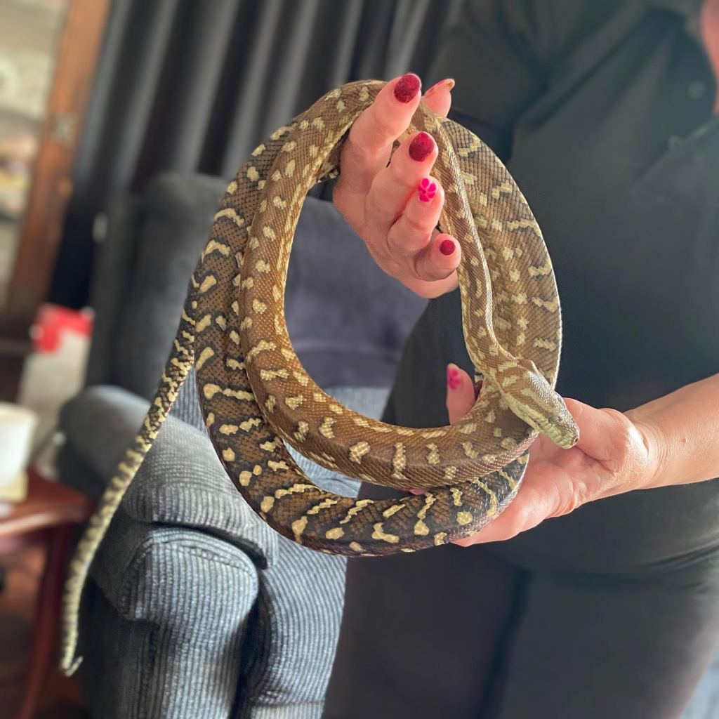 Sandie is a Bredl’s python (Central Carpet Python) who was left behind after her owner was evicted from a property. Her enclosure was large, but filthy and had not had heat for a long time.
