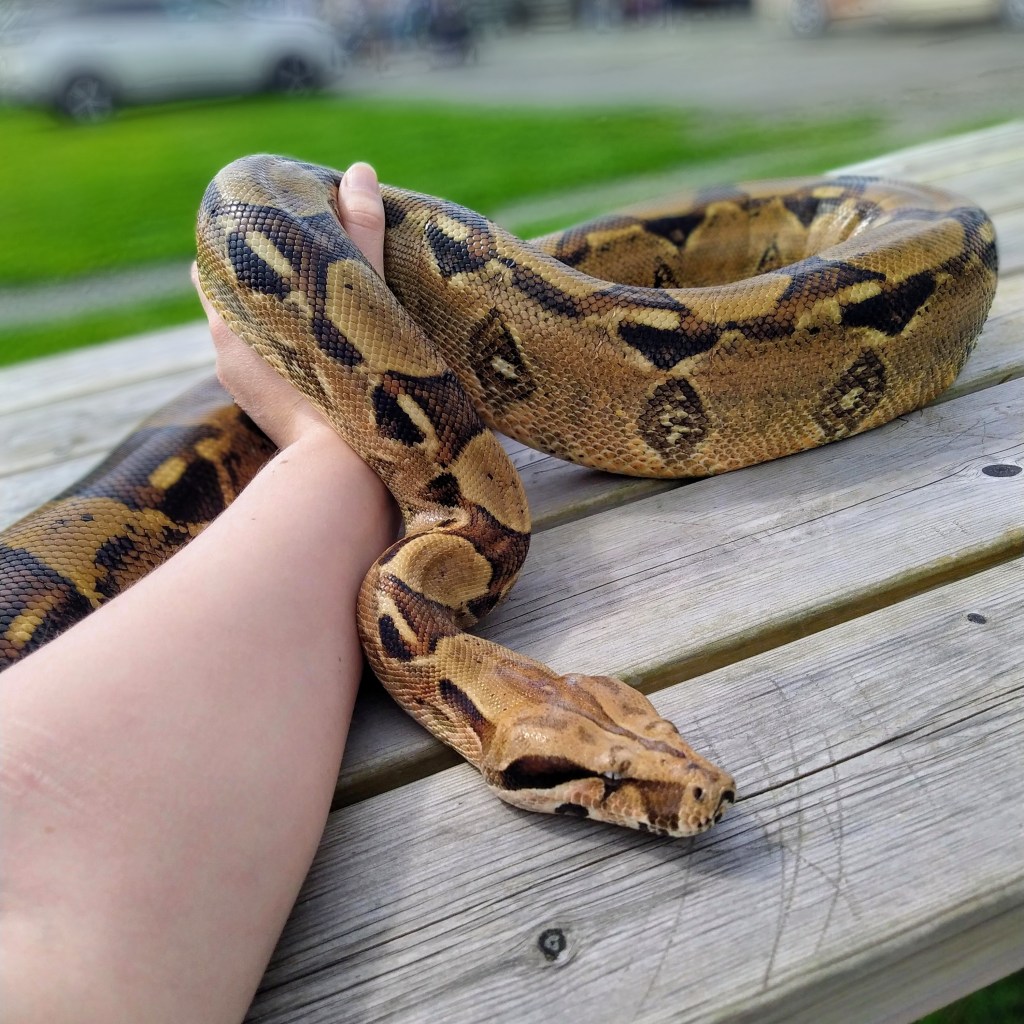 Seamus is a large, common boa constrictor. He was believed to be found by someone while walking the dog, and left in a box at the Exotic Zoo, Telford. His history and previous care are unknown due to this.