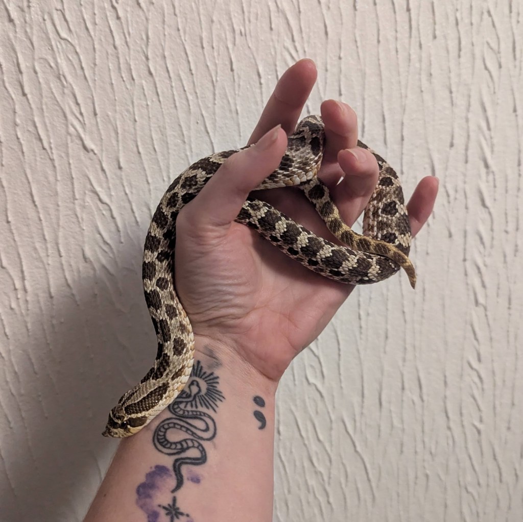 Walter was surrendered in November 2025, after his previous owners health deteriorated and could no longer care for him. He is a 5 year old Western Hognose snake.