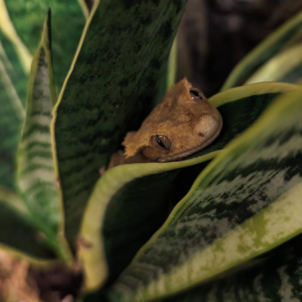 Hiccup arrived at 3 years old in March 2022. She is a crested gecko and upon arrival she went dramatically off food, losing most of her weight very quickly. Despite extensive tests, no cause was identified. With constant hand-feeding, she slowly gained her appetite back and gained the lost weight again, but continues to refuse to eat on her own.